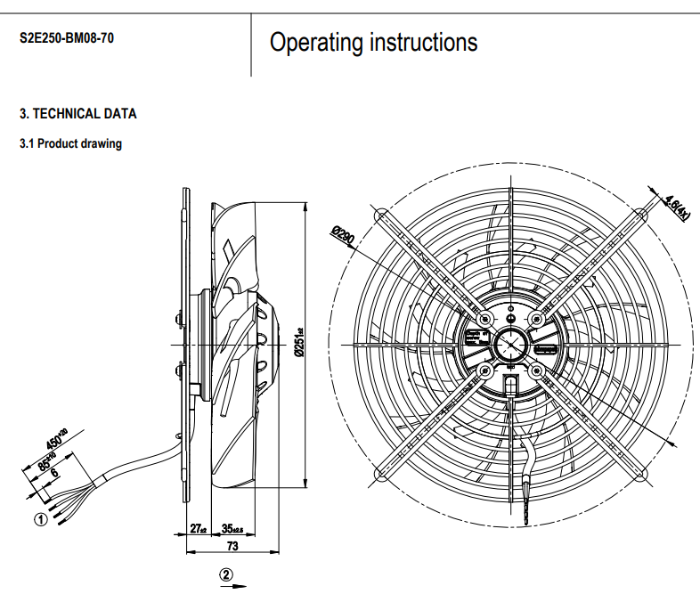 原裝正品軸流ebm風(fēng)機(jī)S2E250-BM08-70的規(guī)格圖