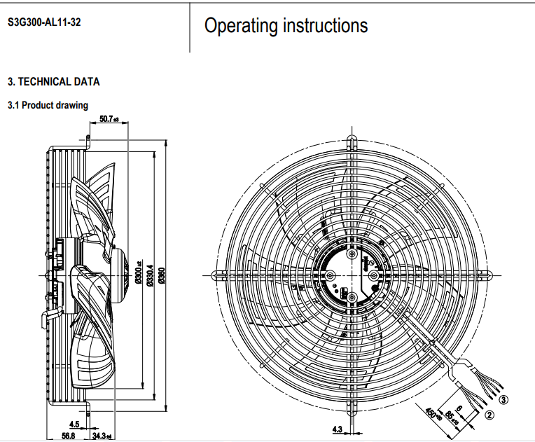 原裝正品軸流ebm風(fēng)機(jī)S3G300-AL11-32的規(guī)格圖