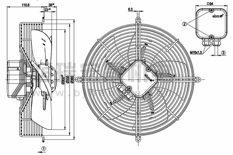 德國ebmpapst S4E300-AR26-87軸流風(fēng)機結(jié)構(gòu)圖