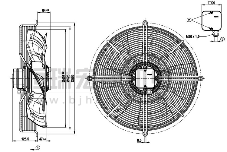 德國ebmpapst S6E500-AJ03-01軸流風(fēng)機結(jié)構(gòu)圖