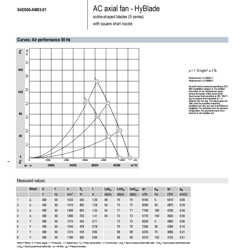 德國ebm全新S4D500-AM03-01軸流風機曲線圖