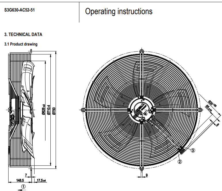 德國ebm全新S3G630-AC52-51軸流風(fēng)機(jī)規(guī)格圖