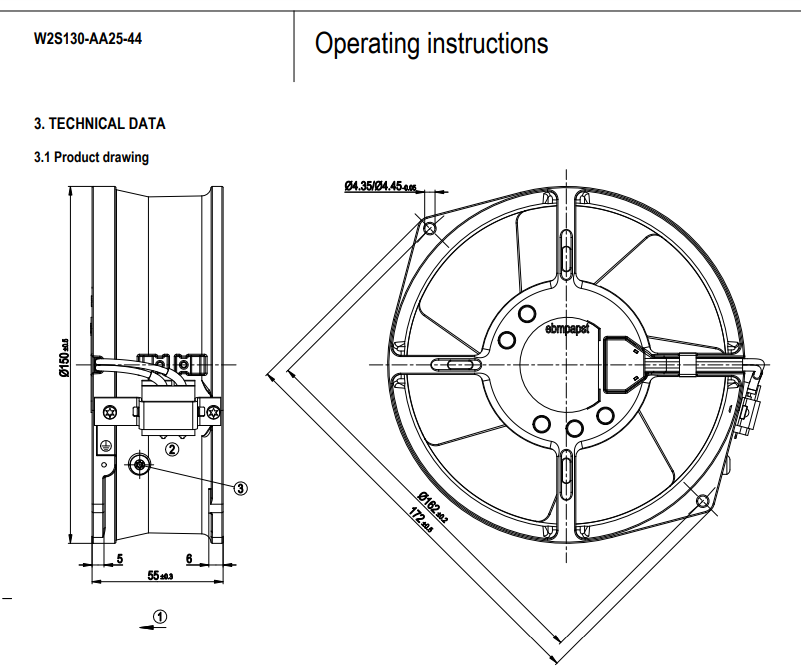 德國ebm全新W2S130-AA25-44軸流風(fēng)機曲線圖