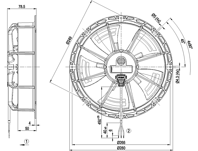 W1G250-HJ63-01風量:2070m³/h 電壓:48v 電流:3.4A 功率:120W 轉速:3090r/min