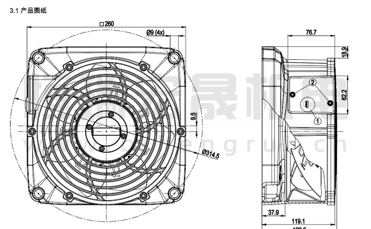 德國ebmpapstW2D255-EB14-14 軸流風機結構圖