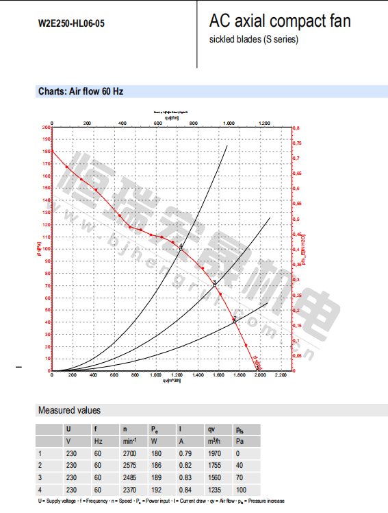 德國ebm全新W2E250-HL06-05軸流風(fēng)機(jī)曲線圖
