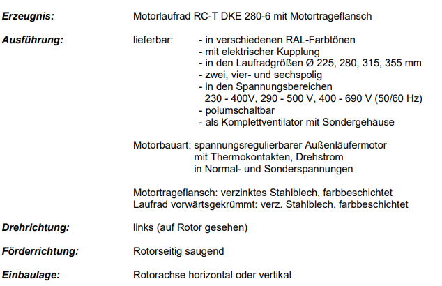 RC-T DKE 280-6離心風機,適用于通風散熱制冷,能源技術行業(yè)