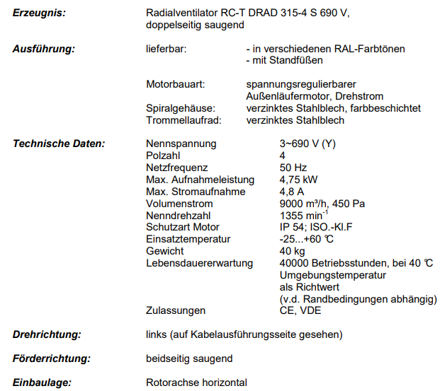 離心風扇RC-T DRAD 315-4 S 690 V