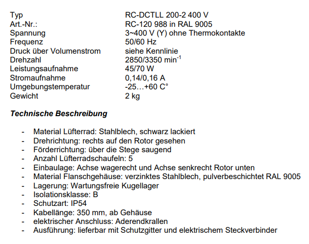 RC-DCTLL 200-2 400 V / RC-DCTLL 200-2 500 V軸流風(fēng)機(jī),適用于通風(fēng)散熱制冷,能源技術(shù)行業(yè)