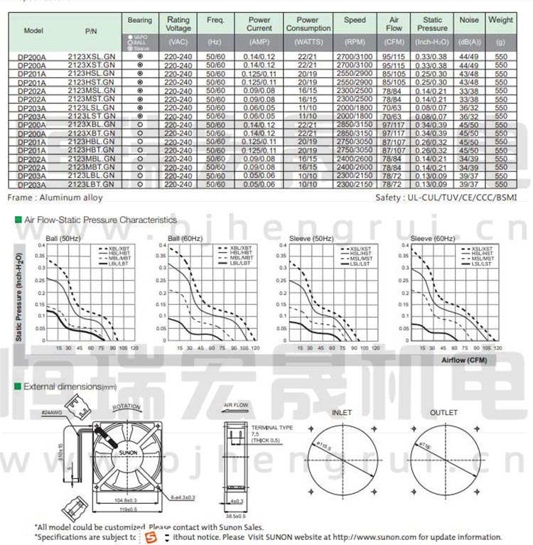 SUNON DP200A 2123XBT.GN交流風(fēng)機(jī)參數(shù)