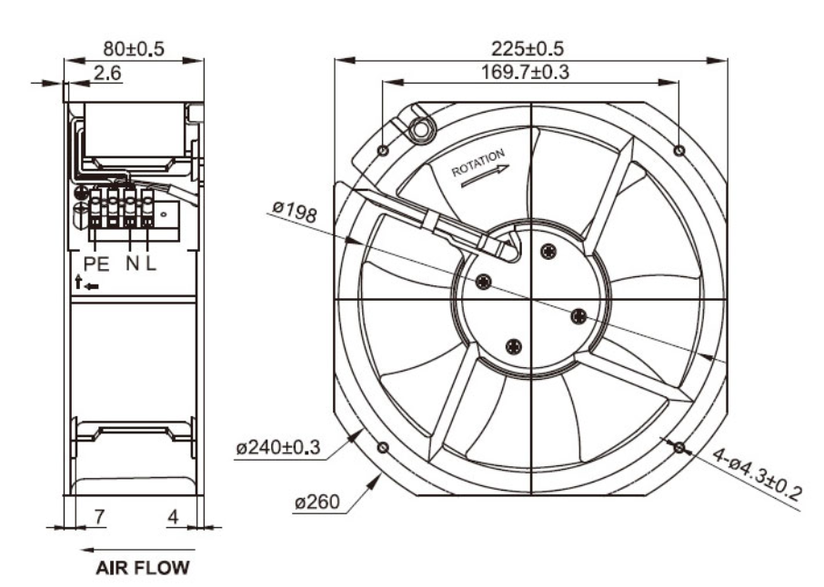 外轉(zhuǎn)式軸流風(fēng)扇, 較傳統(tǒng)軸流風(fēng)扇具有更強(qiáng)大的風(fēng)量與轉(zhuǎn)速, 金屬扇葉設(shè)計(jì)特別符合工業(yè)化用戶的各種需求