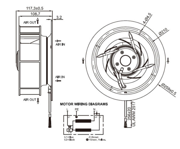 離心扇氣流入風(fēng)口與出風(fēng)口成90度的結(jié)構(gòu)設(shè)計(jì), 適合需要特殊應(yīng)用的工業(yè)化用戶