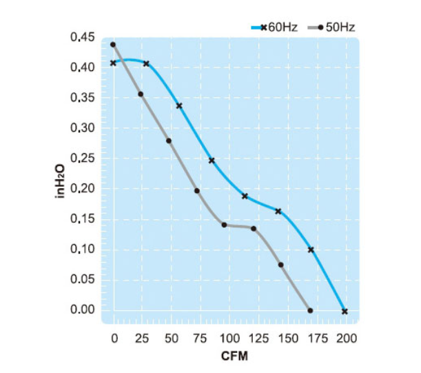 | Maximum Pressure | 0.67/0.75 InchH2O | 0.67/0.75 InchH2O | |