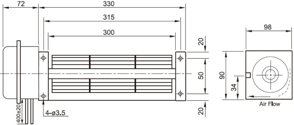 橫流風(fēng)扇特殊的出風(fēng)面窄而長的結(jié)構(gòu)設(shè)計, 特別適合安裝在扁平式的設(shè)備上