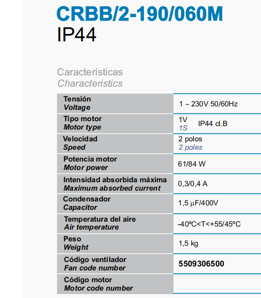 產(chǎn)品型號(hào):CRBB/2-190/060M 5509306500