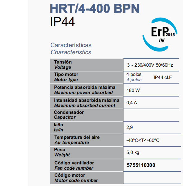 產(chǎn)品型號(hào):HRB/6-400 BPN 5755100900