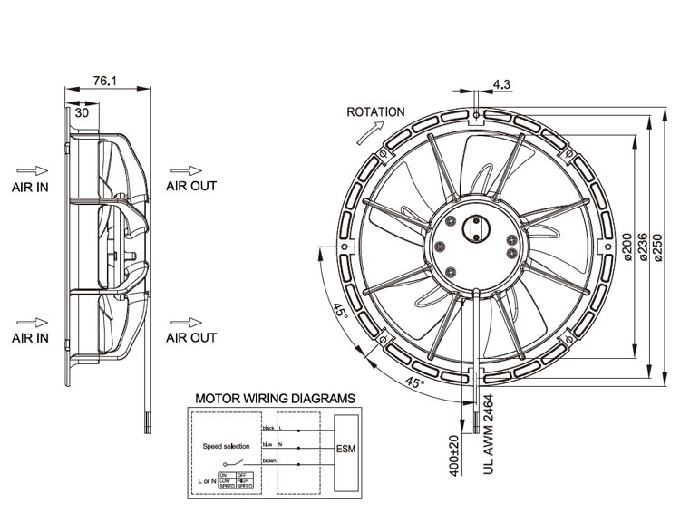 EC防爆風機 UFT200BMB23H1D4A 結構圖