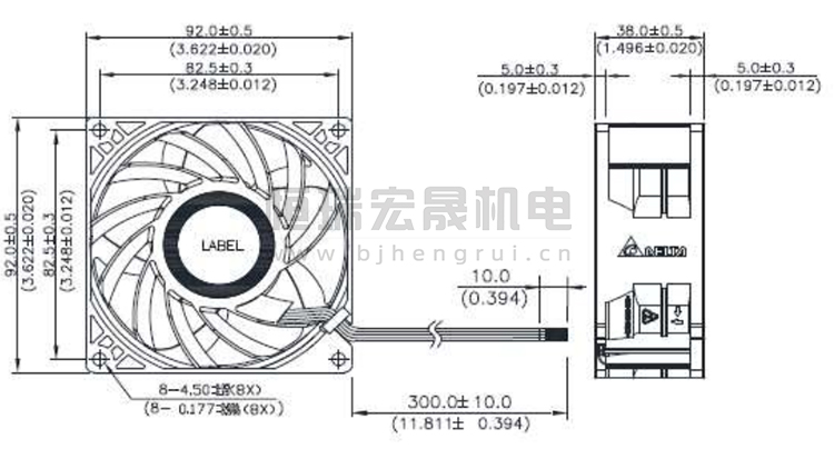 92*92*38mm 臺達Delta風機結(jié)構(gòu)圖