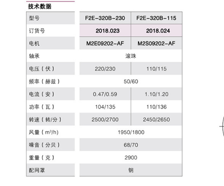 F2E-320B-230 雷普風扇 參數(shù)圖
