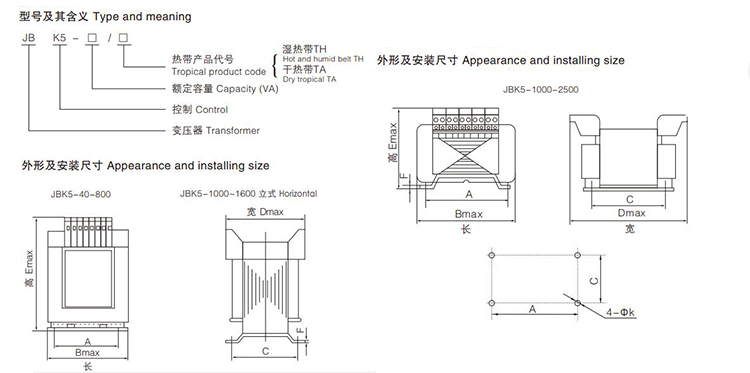 JBK5系列變壓器適用于交流50/60Hz,輸入電壓不超過1120V,輸出額定電壓不超過1120V,作為各行各業(yè)的機械設(shè)備,一般電器控制電源和工作、信號燈的電源之用。
