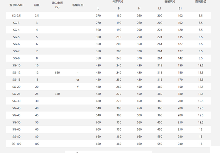 SG系列低壓三相干式變壓器 SG-5 SG-6 SG-7 SG-8 SG-10 SG-12 SG-15 SG-20 SG-25 SG-30 SG-40 SG-45 SG-50 SG-60 SG-80 SG-100