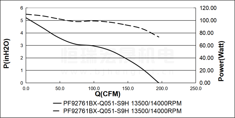 SUNON建準 PF92761BX-Q051-S9H 直流風機風量圖