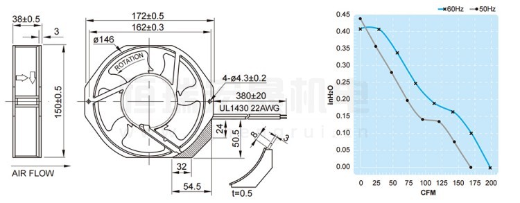 UF15A23BTH FULLTECH 福佑風(fēng)機(jī)結(jié)構(gòu)風(fēng)量圖: