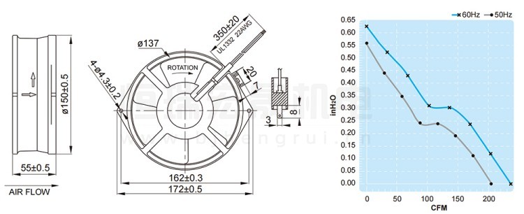 UF15KM23BWHF FULLTECH 福佑風機結(jié)構(gòu)風量圖: