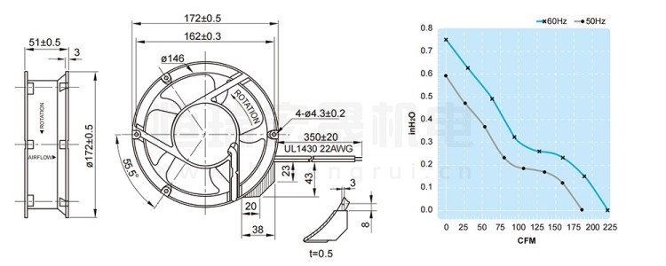 UF-17PC23BWH FULLTECH 福佑風(fēng)機(jī)結(jié)構(gòu)風(fēng)量圖: