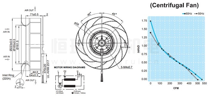 UF-220APA23H2C2A FULLTECH 福佑風機結構風量圖: