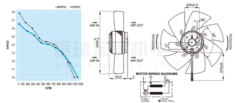 UF250BMB23H1C2E FULLTECH 福佑風(fēng)機結(jié)構(gòu)風(fēng)量圖: